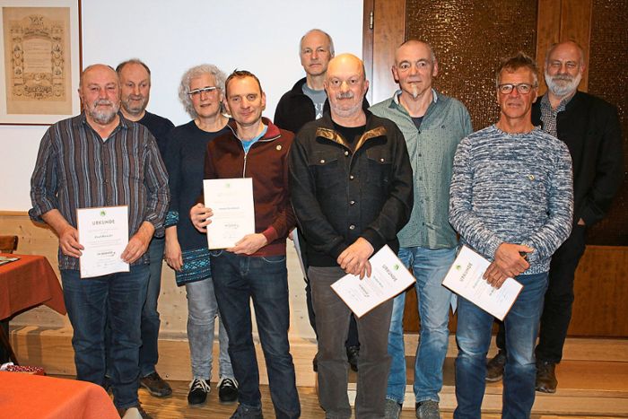 Für 30 Jahre Treue wurde Armin Bernhard mit dem Imkerband in Gold geehrt. Seit zehn Jahren sind neun Mitglieder aktiv bei der Imkerei, die Vorsitzende Ute Schwer ehrte dafür Wilfried Straub, Rita Schwarz, Josef Kienzler, Thomas Markon Alfred Heinzelmann, Norbert Weis, Klaus Richter, Manfred Willmann und Wilfried Hellweg. Für 20 Jahre passive Mitgliedschaft zeichnete sie Thomas Riesle und Lothar Dotter aus.